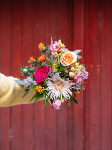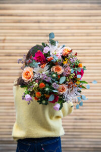 Chaque bouquet est composé à la main dans notre atelier à Lyon, avec des fleurs fraîches et de saison.