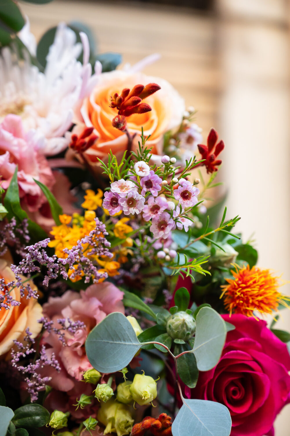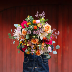 Le bouquet du mois de novembre célèbre la douceur automnale à travers une palette chaude et lumineuse : des teintes orangées, pêche, rose et fuchsia qui apportent éclat et chaleur à la saison.