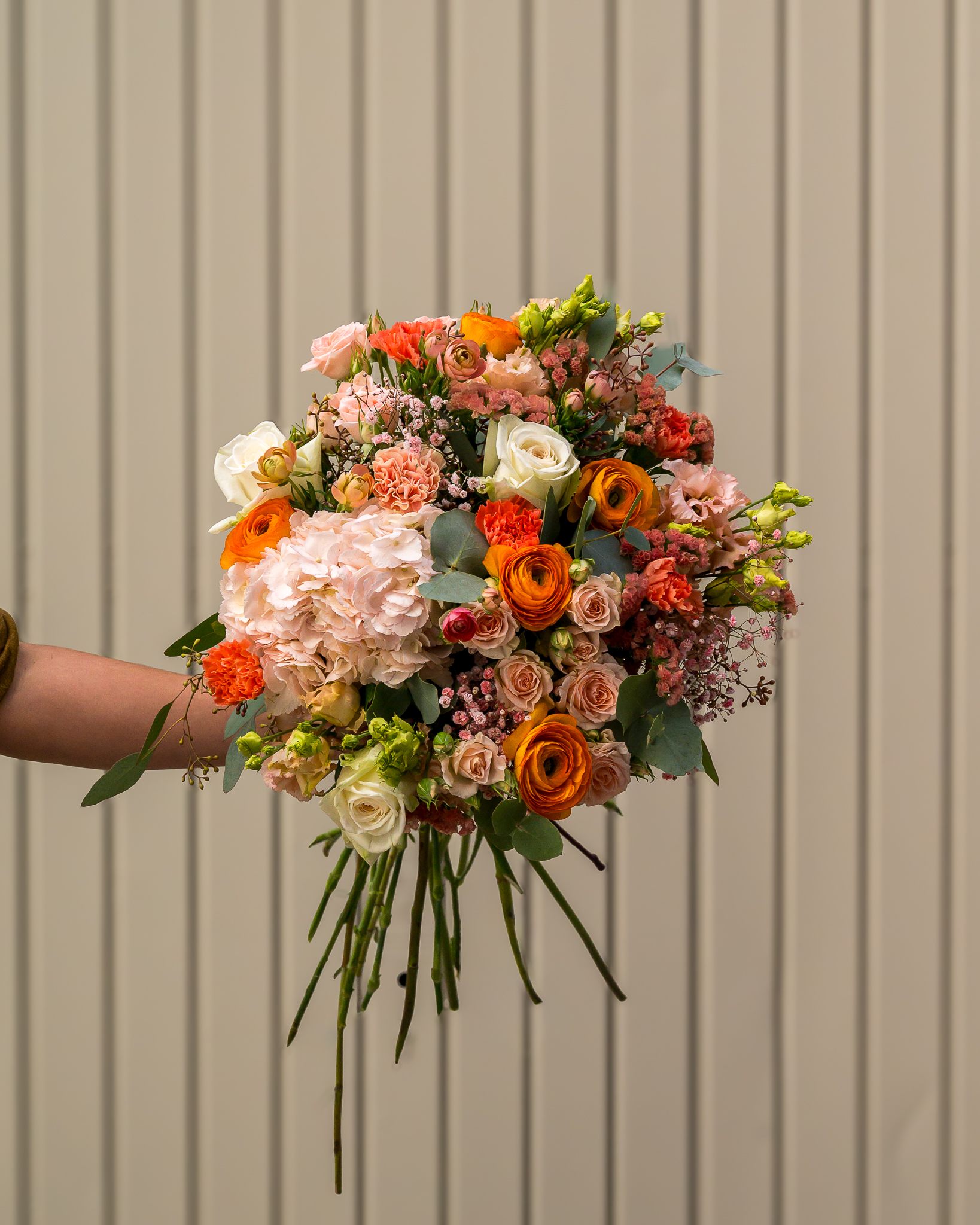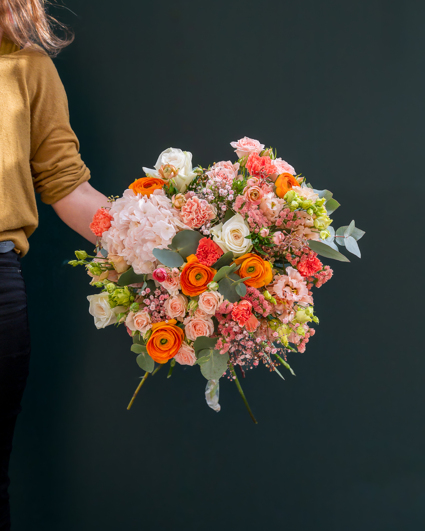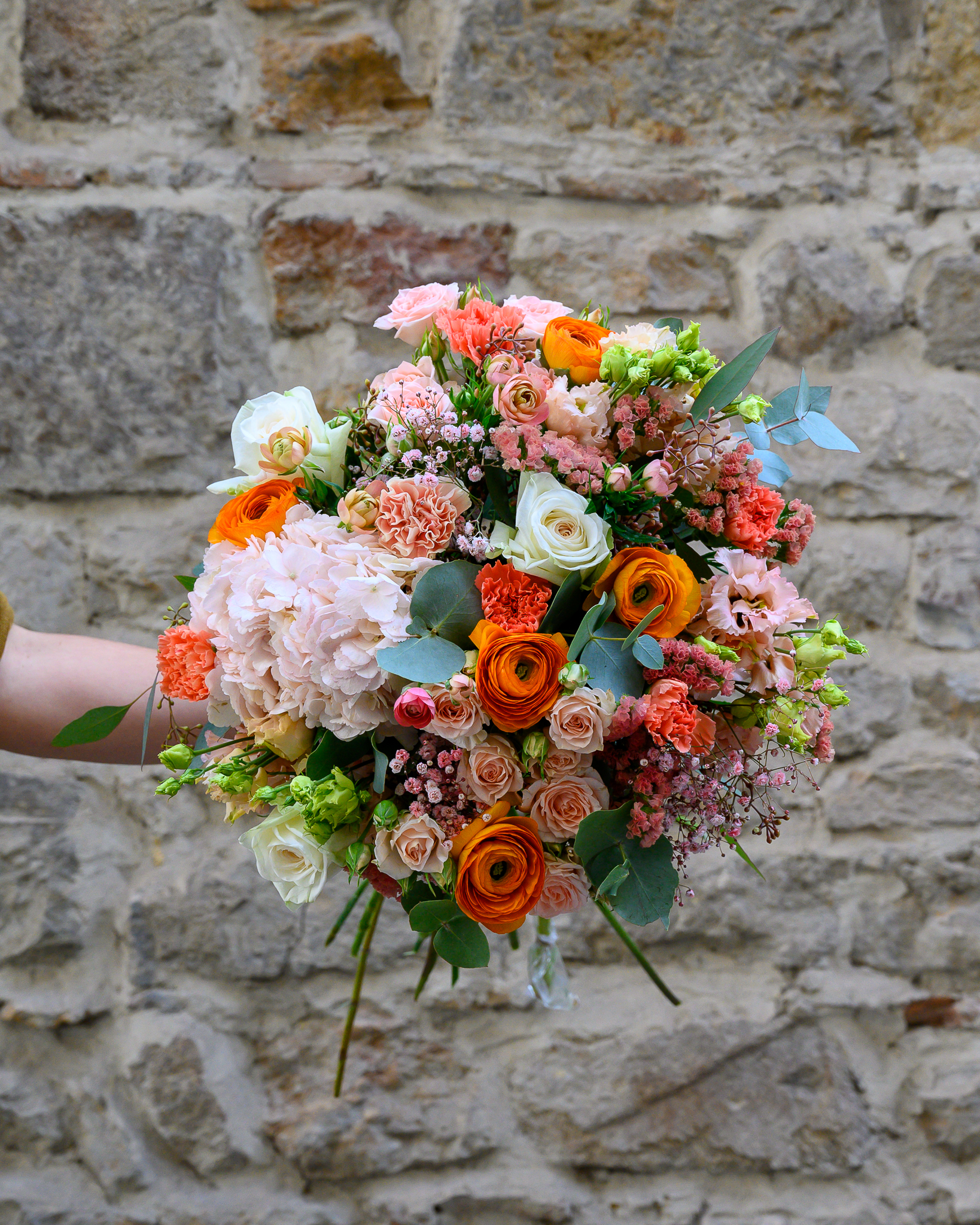 Le bouquet « Pêcher-Mignon » se distingue par ses tons pêche-orangés, saumon, et des touches de rose nude, ivoire, ou pastel jaune. Ces nuances symbolisent l’estime et l’admiration dans le langage des fleurs. Ce bouquet est à la fois joyeux et universel, parfait pour toutes occasions.