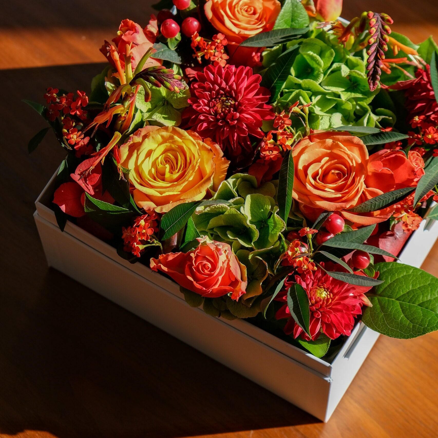La photo de la flower box « Balade en forêt » est non contractuelle. Votre commande sera réalisée avec les plus belles fleurs d’arrivage du jour.