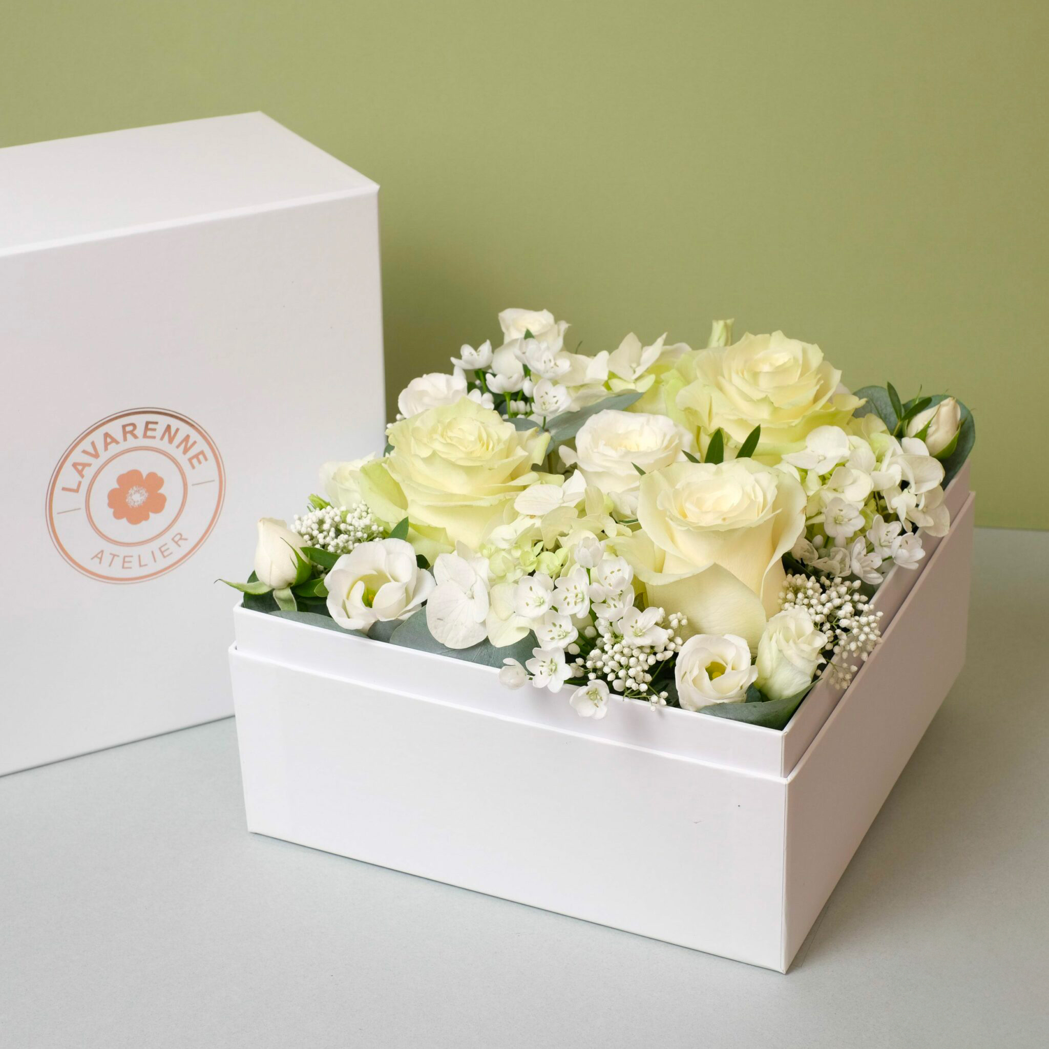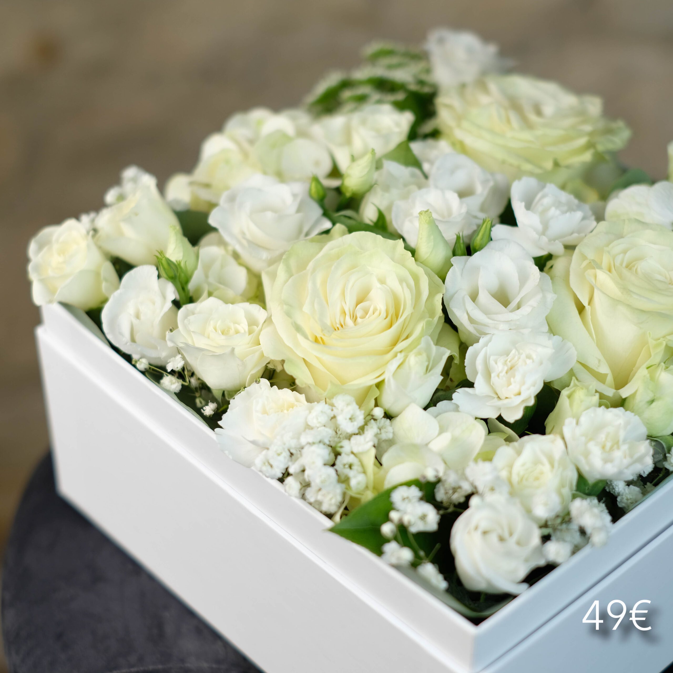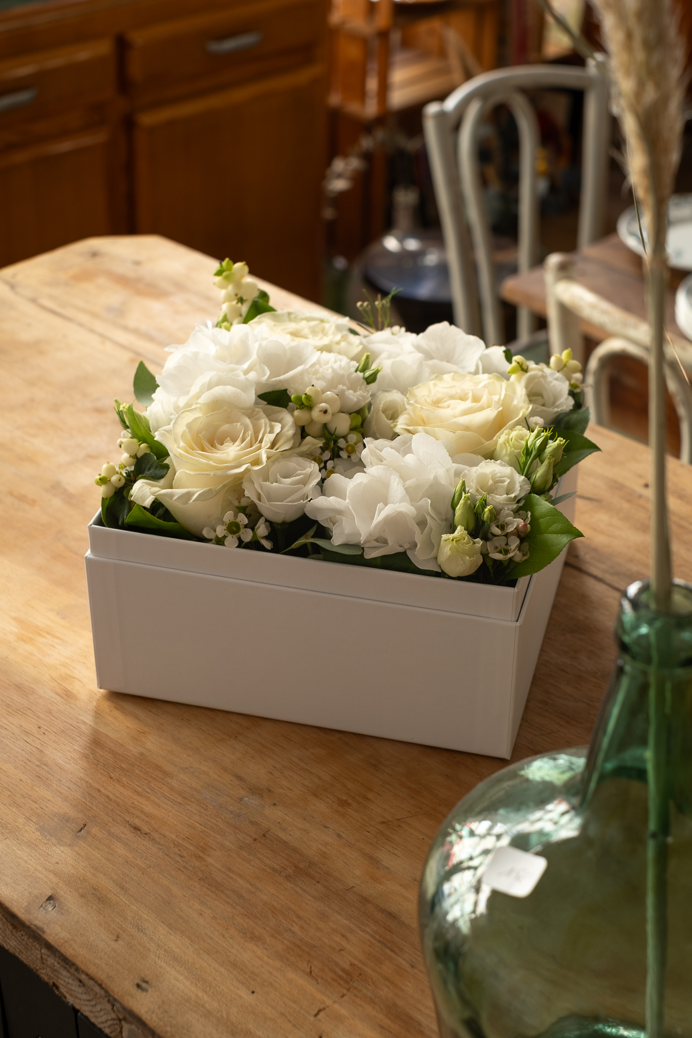N°1 des ventes depuis 2015, le coffret-fleurs blanc, taille M, modèle « Élégance« , symbolise pureté, sincérité et sagesse. Les fleurs blanches sont une valeur sûre : toujours chics, élégantes et intemporelles, elles trouvent leur place dans tous les intérieurs, quelle que soit la décoration.